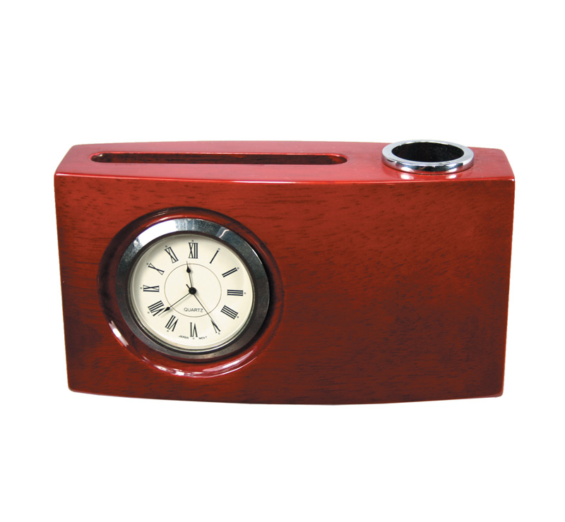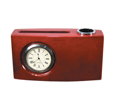Luxury single pen holder with clock and and business card holder.