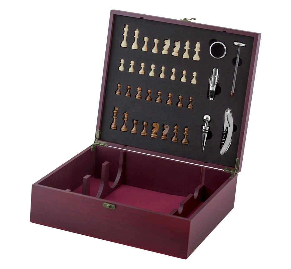 Includes wooden chess pieces, a waitress knife, a bottle stopper,