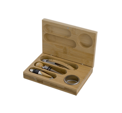 Комплект за вино, 4 части, дървена кутия–тирбушон,