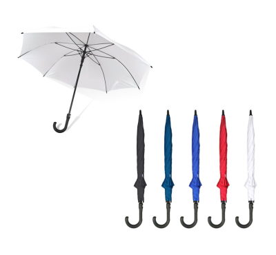 Автоматичен чадър, 8 панелен, конструкция от фибростъкло и метал, пластмасова извита дръжка.