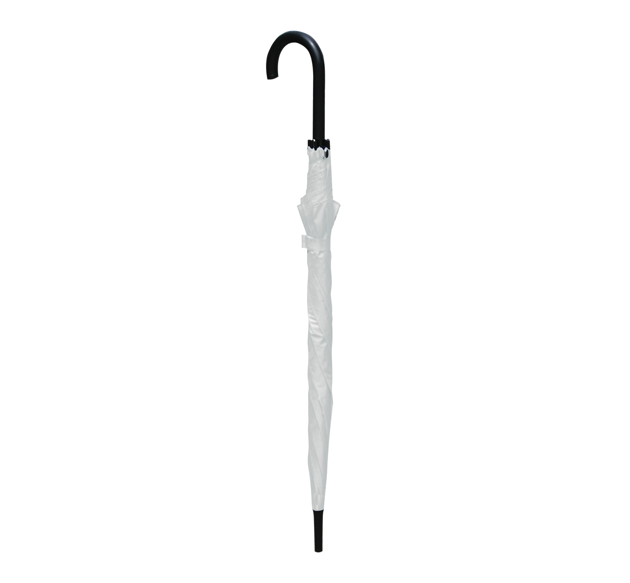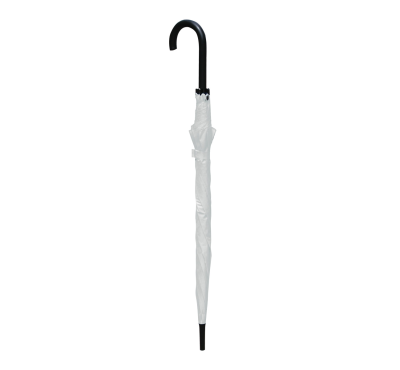 8-panel umbrella with plastic curved handle, metal shaft and ribs, and automatic opening.
