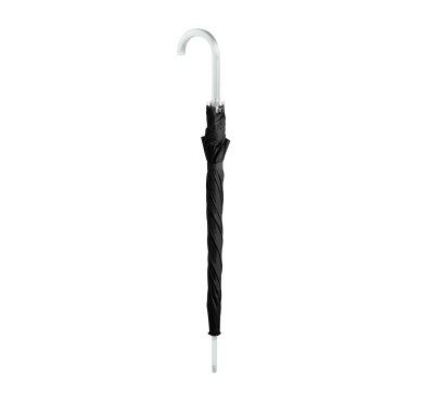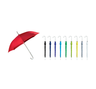 8-panel umbrella with aluminium curved handle, metal shaft and ribs, and automatic opening.