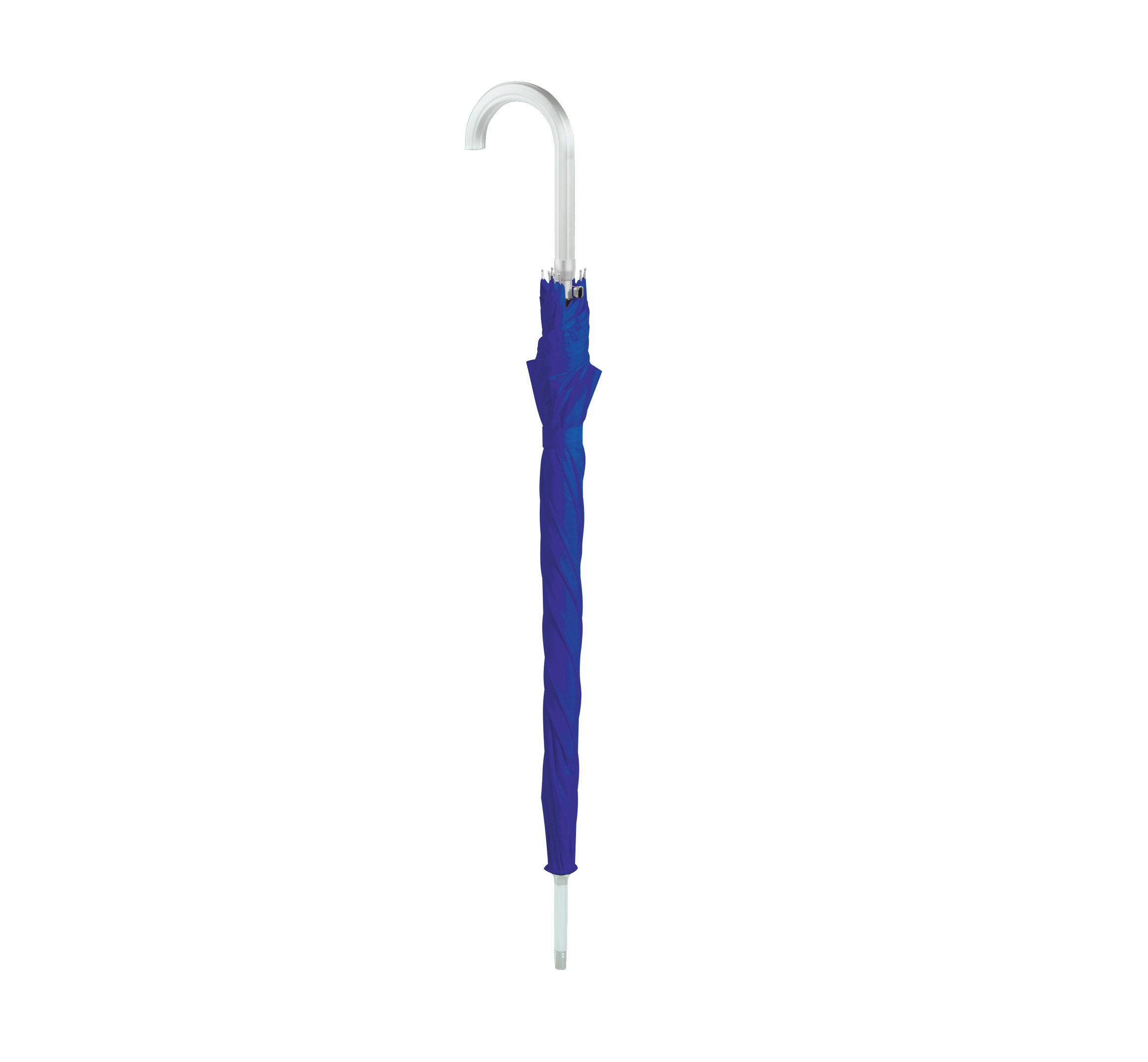 8-panel umbrella with aluminium curved handle, metal shaft and ribs, and automatic opening.