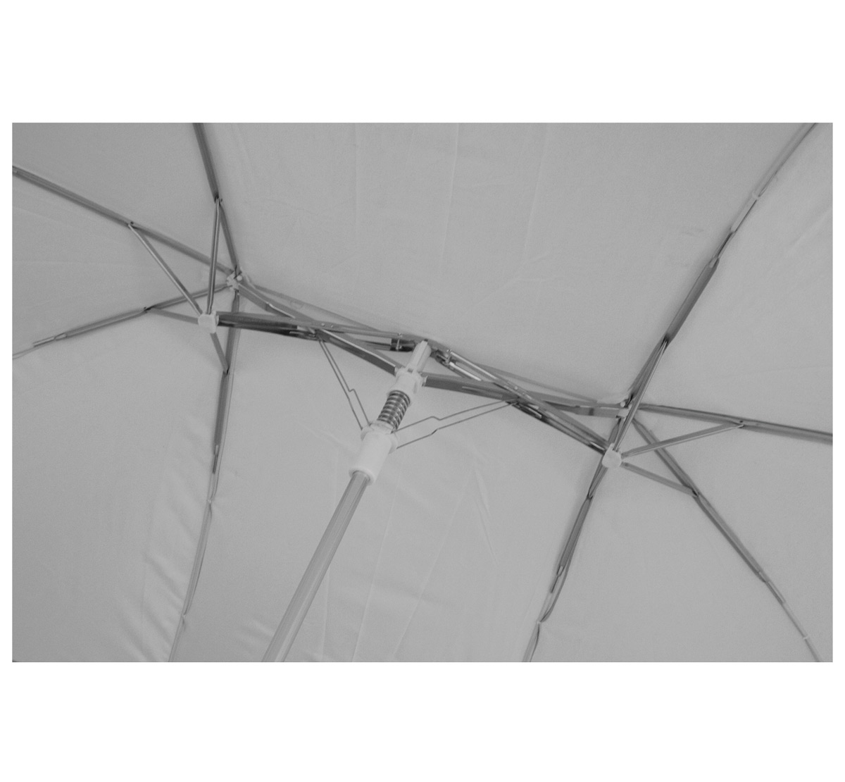 Автоматичен чадър, 8 панелен, метална конструкция, пластмасова извита дръжка.