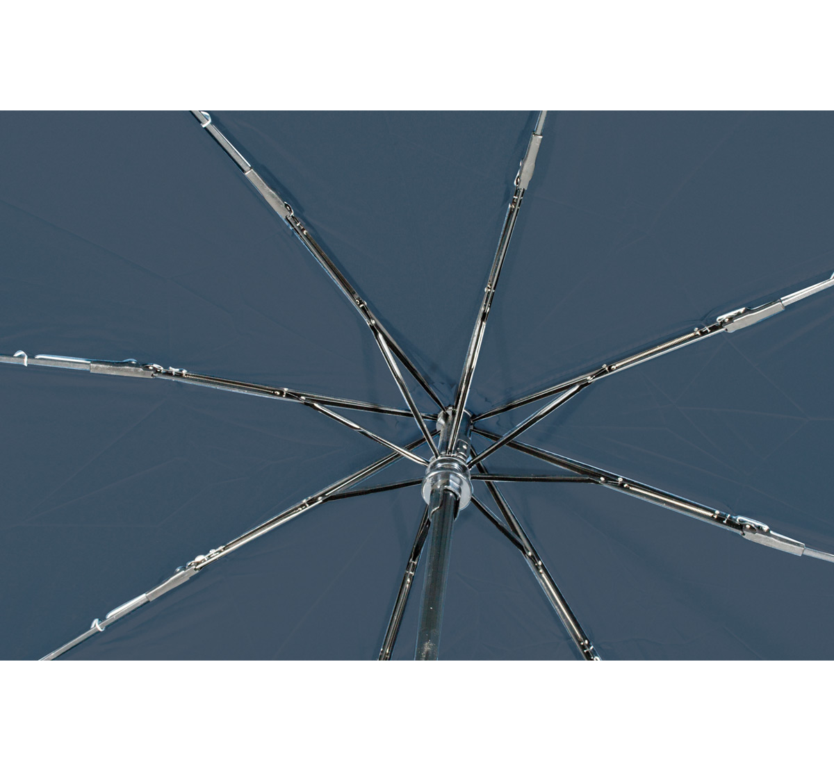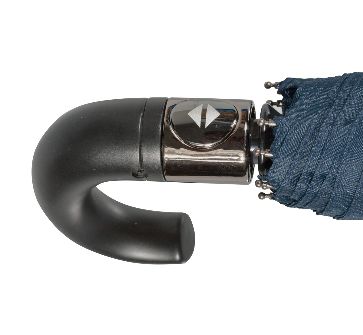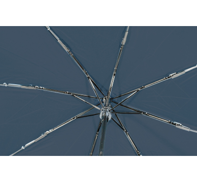 Сгъваем чадър, автоматичен (отваряне/затваряне), 8 панелен, ветроустойчив, конструкция от фибростъкло, пластмасова извита дръжка.