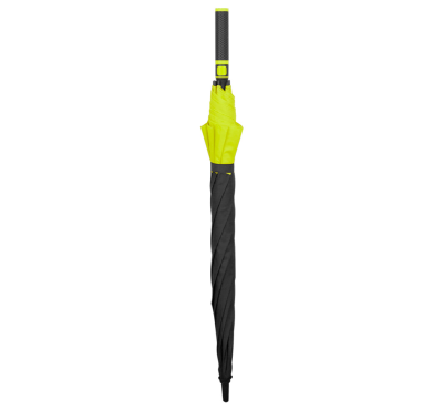 8-panel umbrella with plastic handle, fiberglass shaft and rib, and automatic opening.