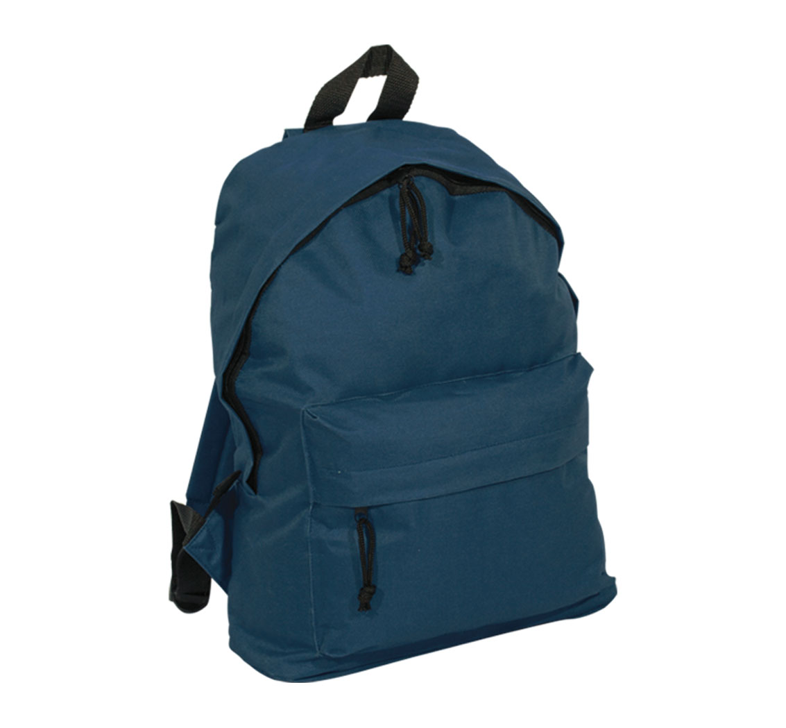 Раница с едно отделение, подсилен гръб, малък външен джоб с цип.