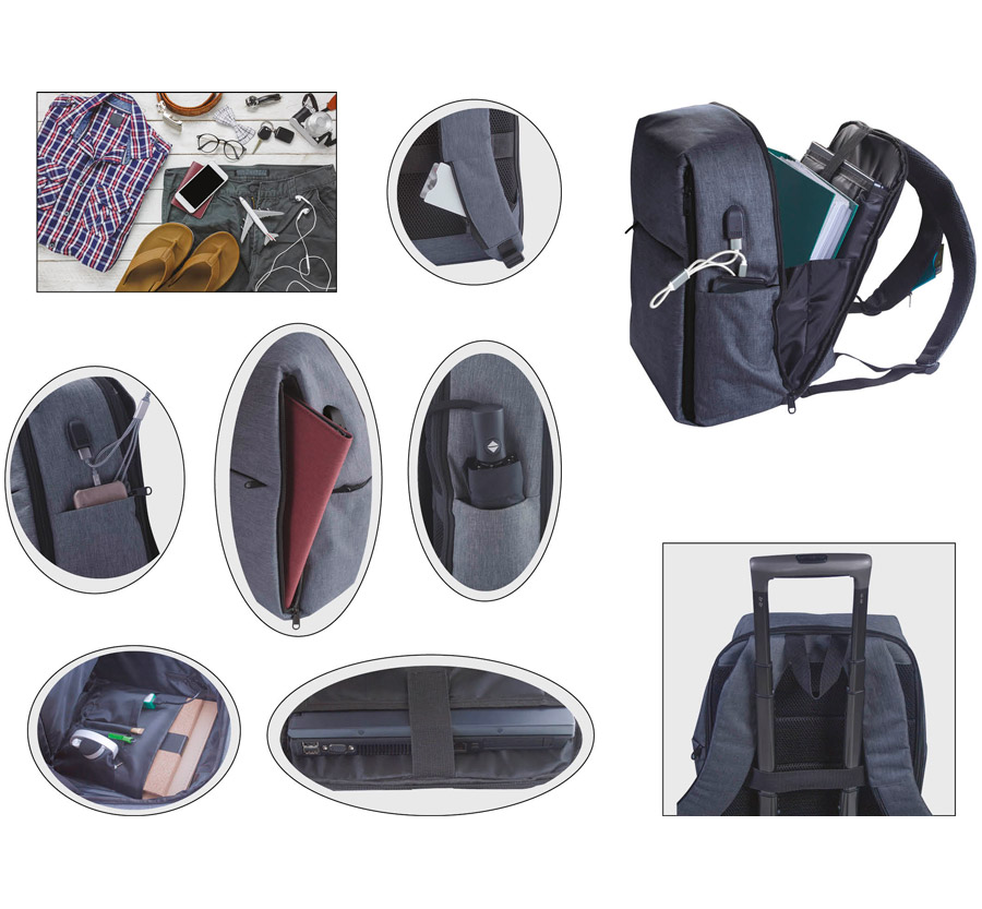 Бизнес раница с две от деления, подсилен гръб и дръжки, вътрешни и външни джобове,