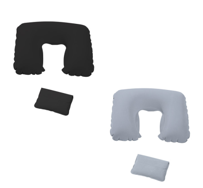 PVC inflatable U-shape neck pillow packed in a small pouch.