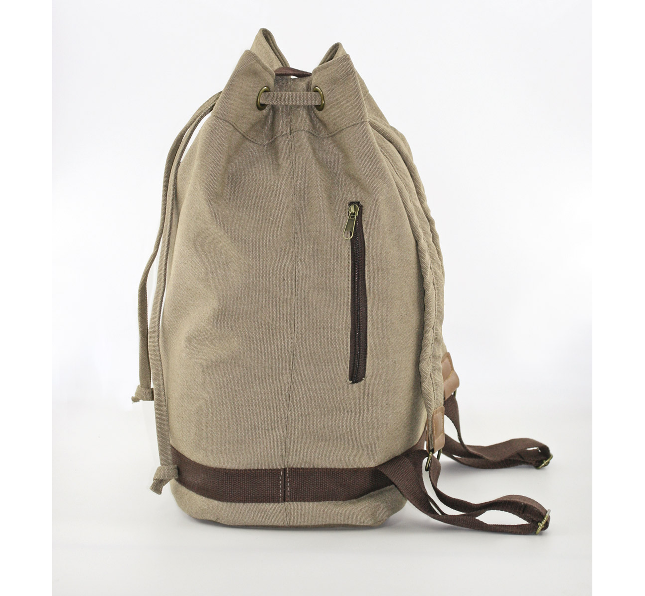 Раница тип мешка с едно отделение, вътрешни джобове, външен джоб с цип.