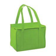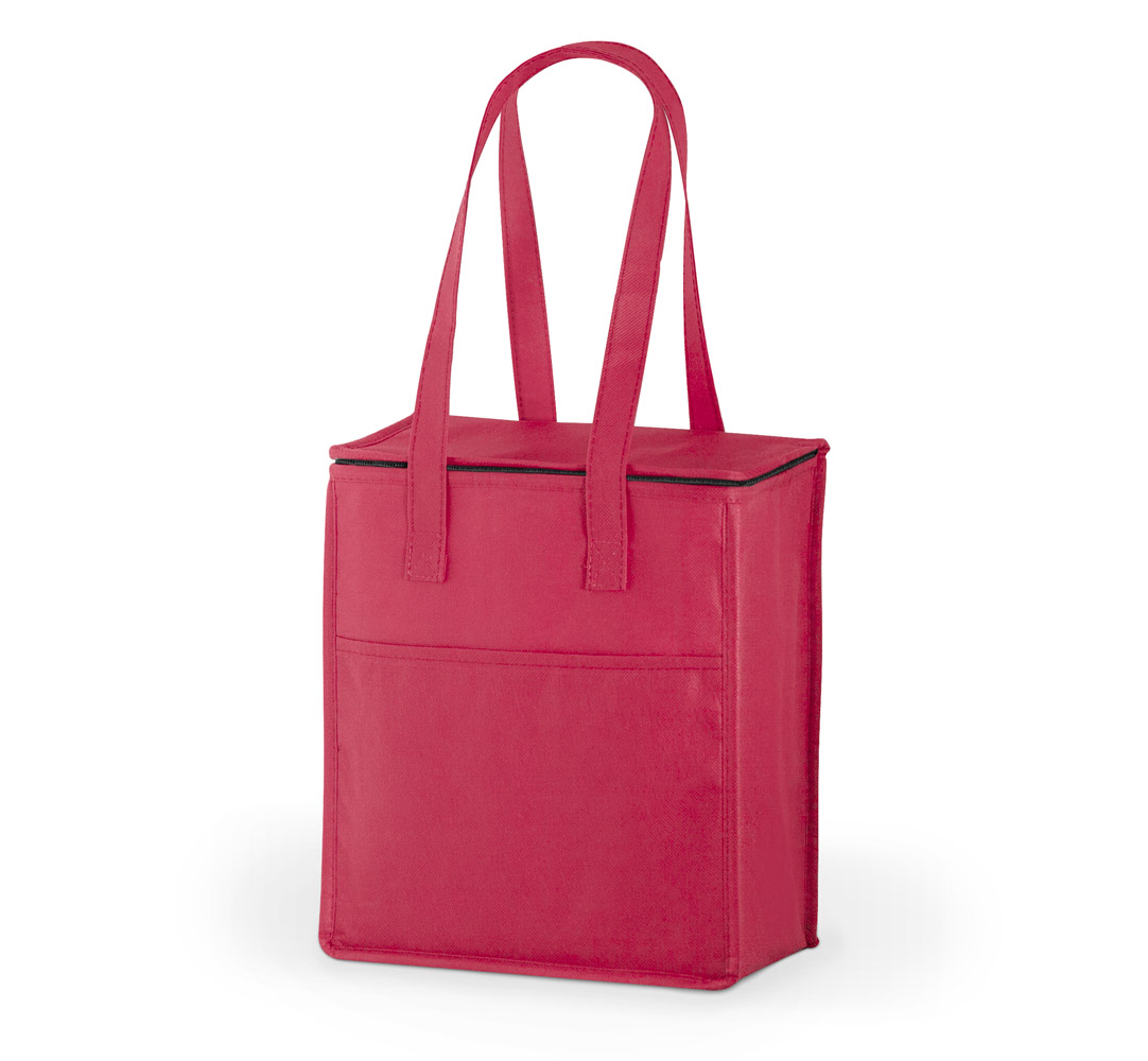 Non-woven compact cooler bag with zipped main compartment.