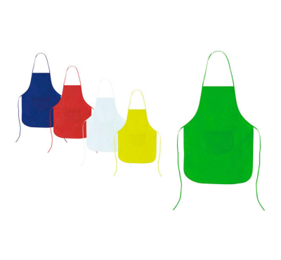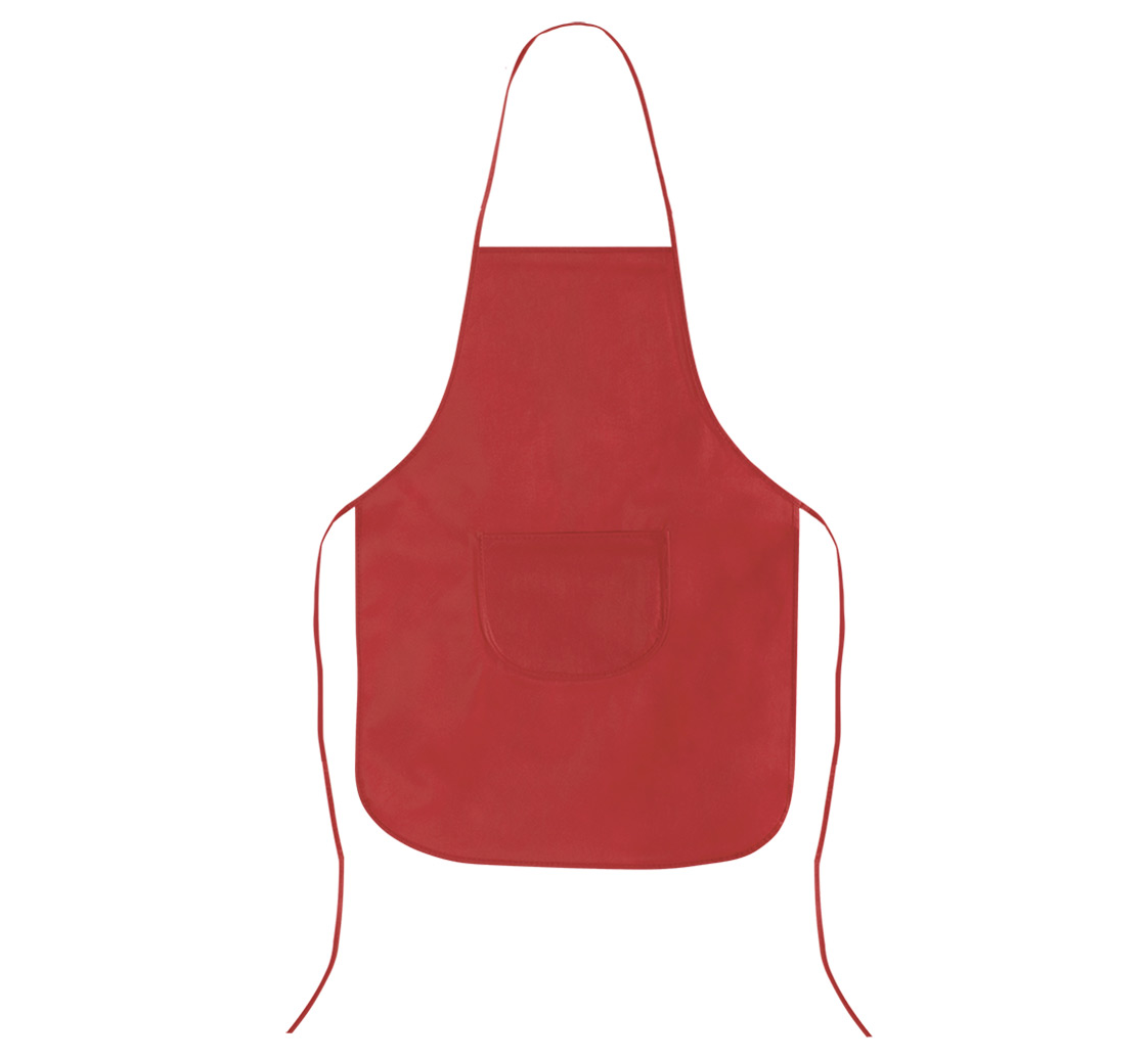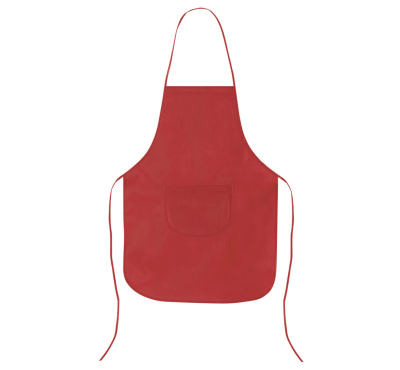 Non-woven apron with tie-back closure and front pocket.