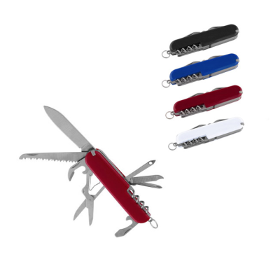 ножица, нож, трион, отварачка за консерва, отварачка за бутилка, тирбушон, пила за нокти, пробиващо острие, отвертка.
