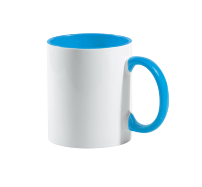 Classic design ceramic mug with colored inner and handle.