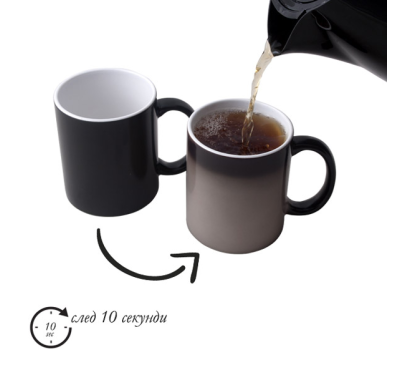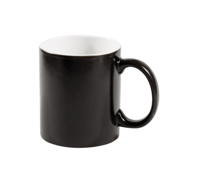 Magic mug, classic design ceramic mug with a special heat-sensitive black coating.
