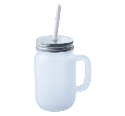 Буркан „Frost“ за напитки с дръжка, капак на винт и сламка, 400 ml.