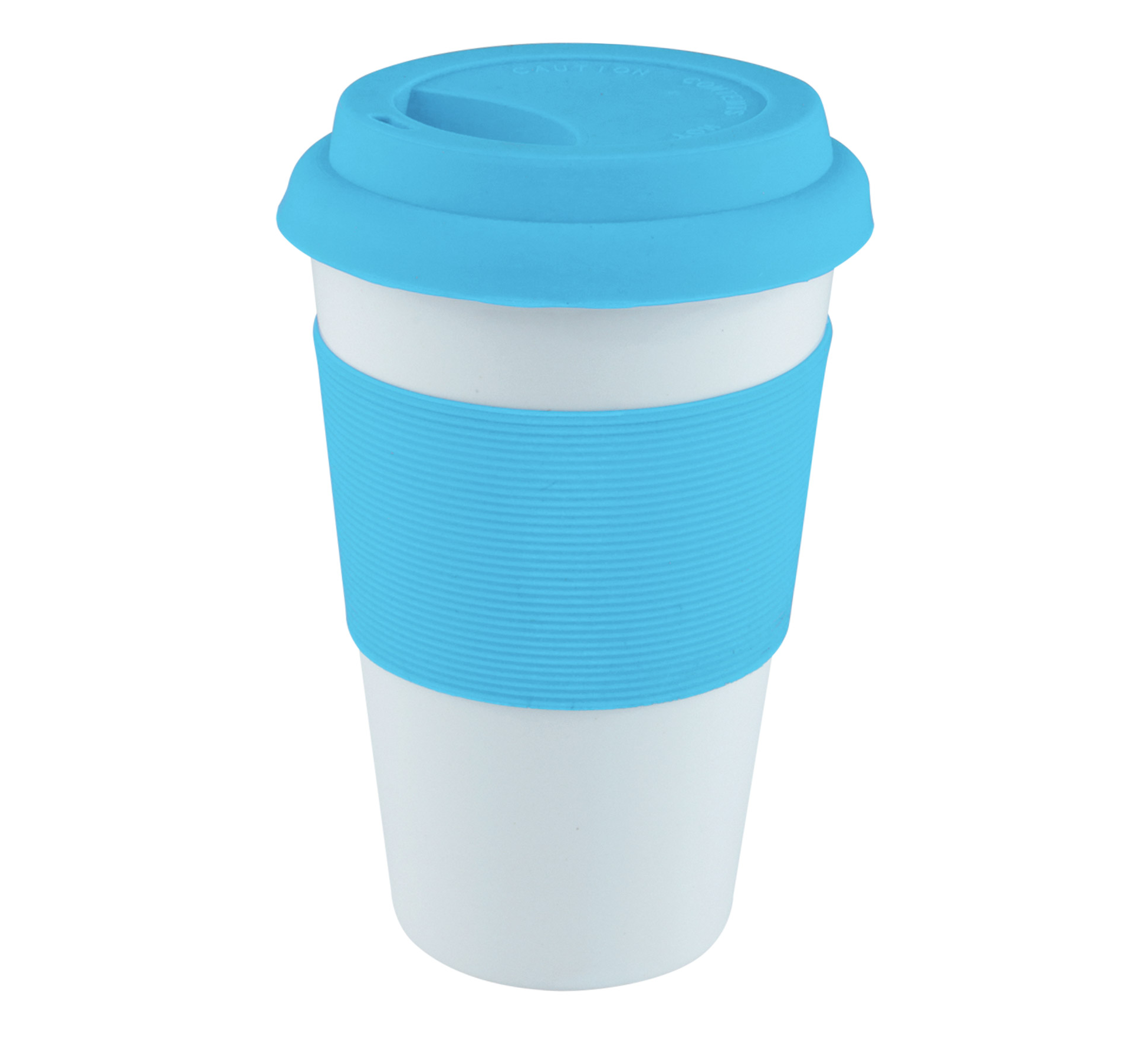 Керамична чаша със силиконов капак и силиконово захващане, 340 ml.