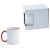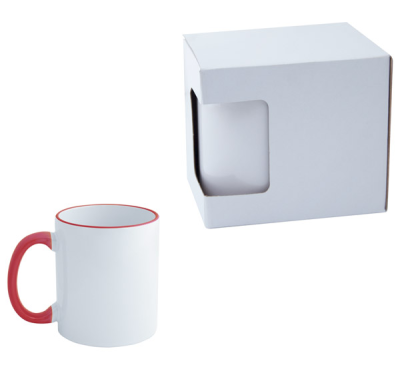 Classic design ceramic mug with colored rim and handle. Supplied in a white gift box.