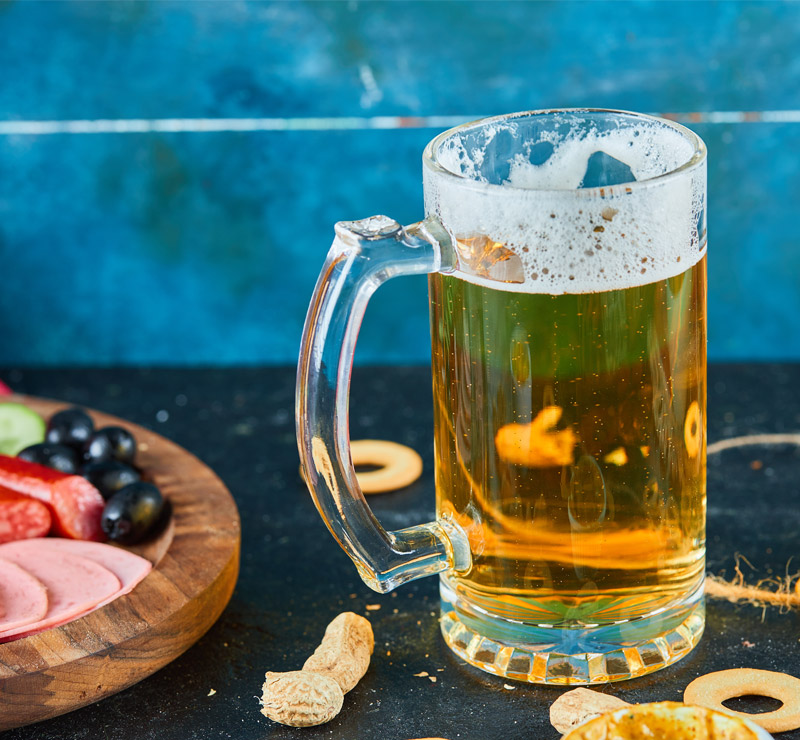 Glass beer mug. Volume capacity is 480 ml.