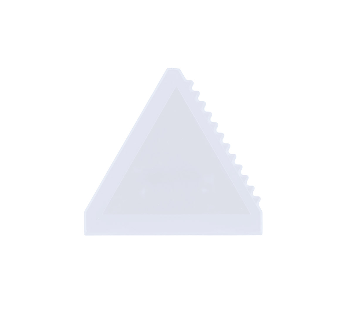 Triangle plastic ice scraper with three scraping options.