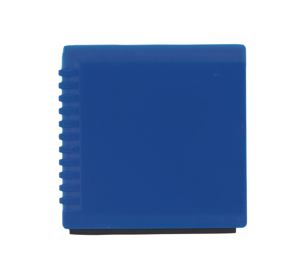 Square plastic ice scraper with three scraping options.