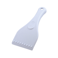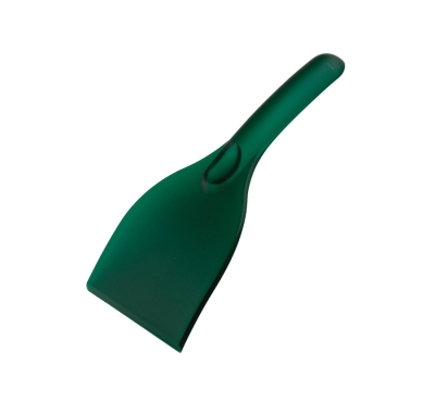 Curved plastic ice scraper.