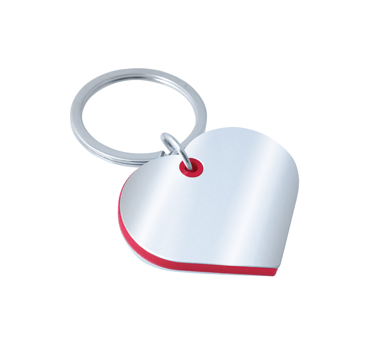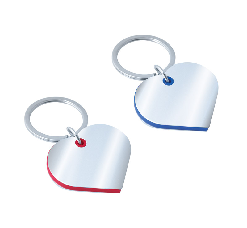 Heart shaped aluminium keychain with metal split keyring.