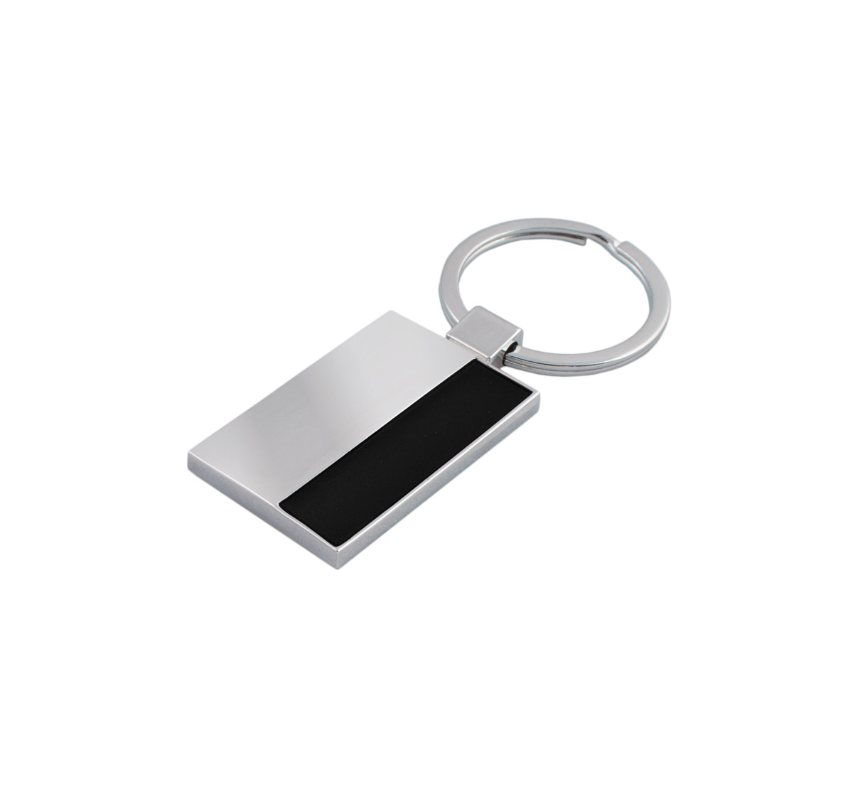Metal rectangular shaped keychain with metal split keyring.