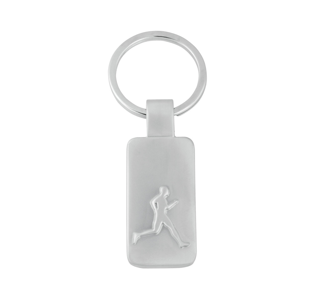 Running man shaped metal keychain with metal split keyring.