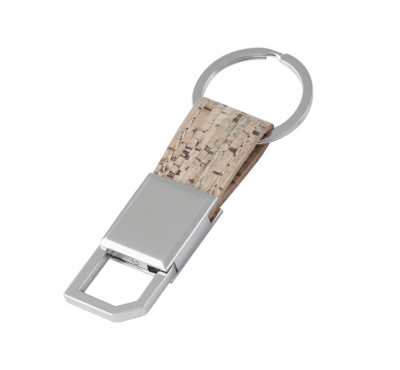Cork-look keychain with metal split keyring.