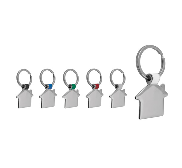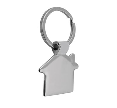 House shaped metal keychain with metal split keyring.