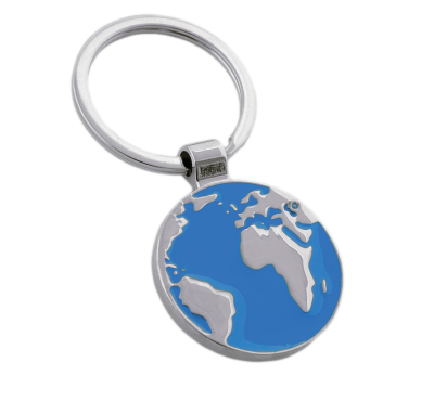 Globe shaped metal keychain with metal split keyring.