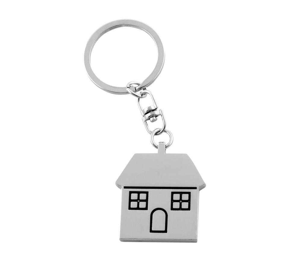 House shaped metal keychain with metal split keyring.