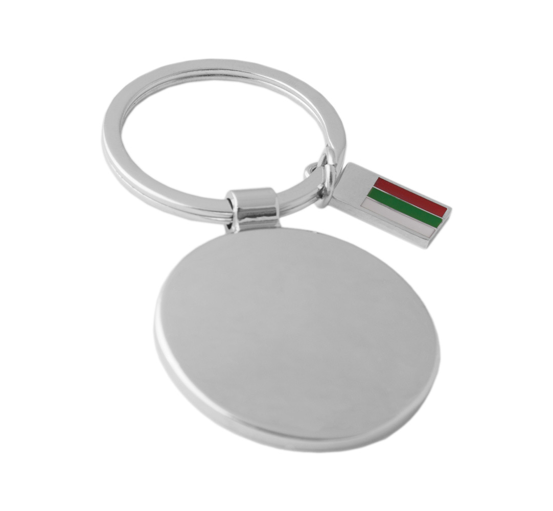 Metal round keychain with Bulgarian country flag plate and metal split keyring.