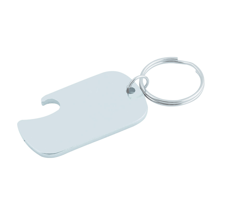Aluminium bottle opener keychain with metal split keyring.