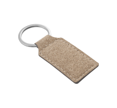 Cork-look rectangular keychain with metal split keyring.