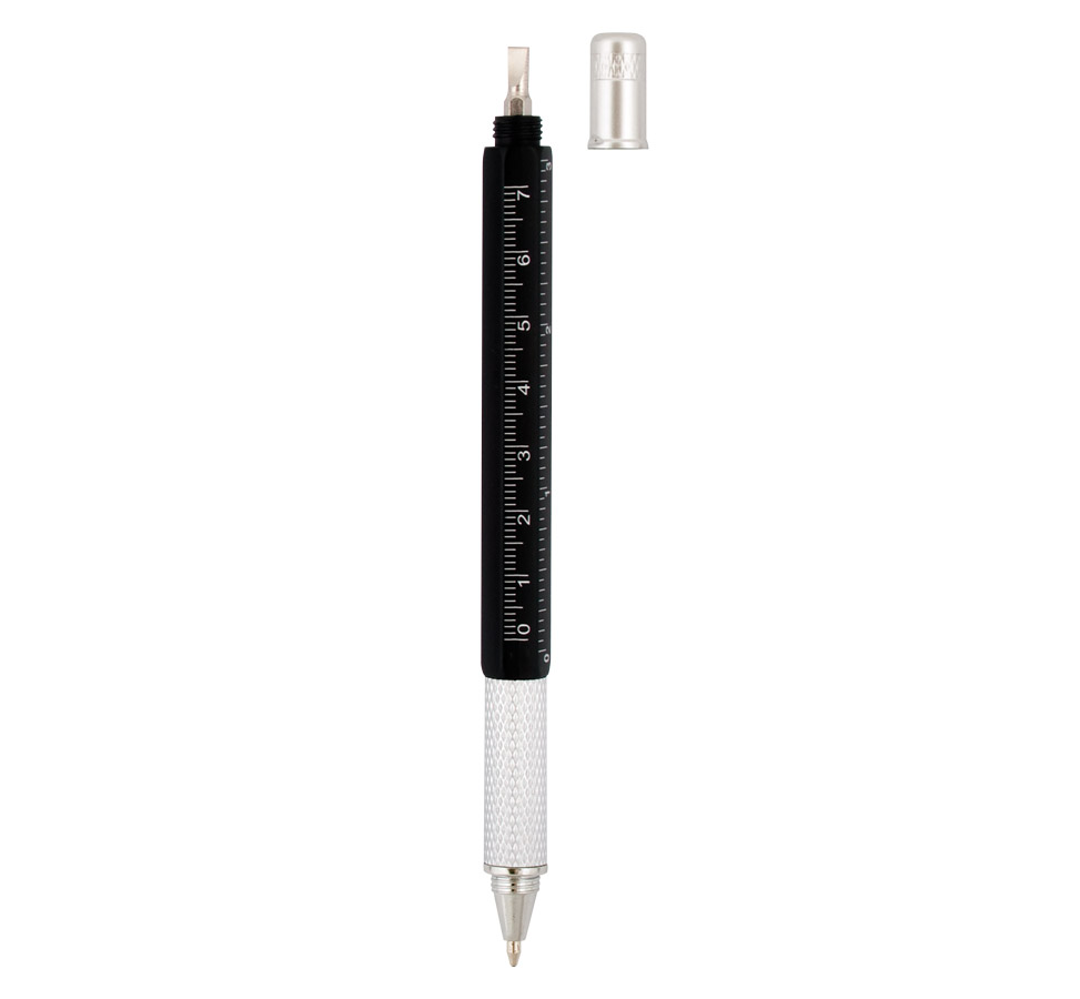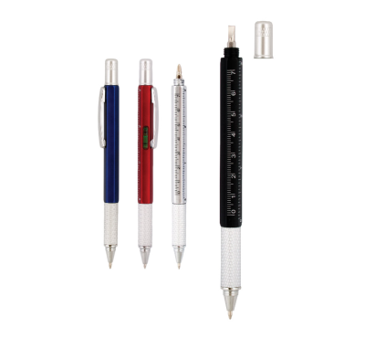 Химикалка с отвертка, нивелир и линия.