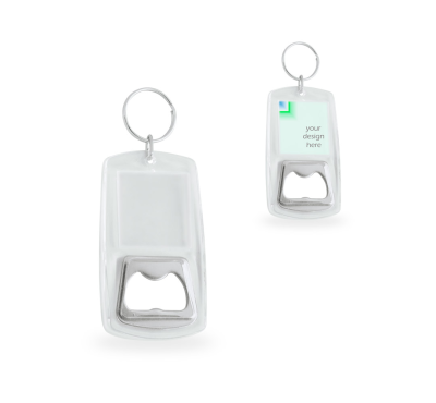 Plastic keychain, bottle opener.