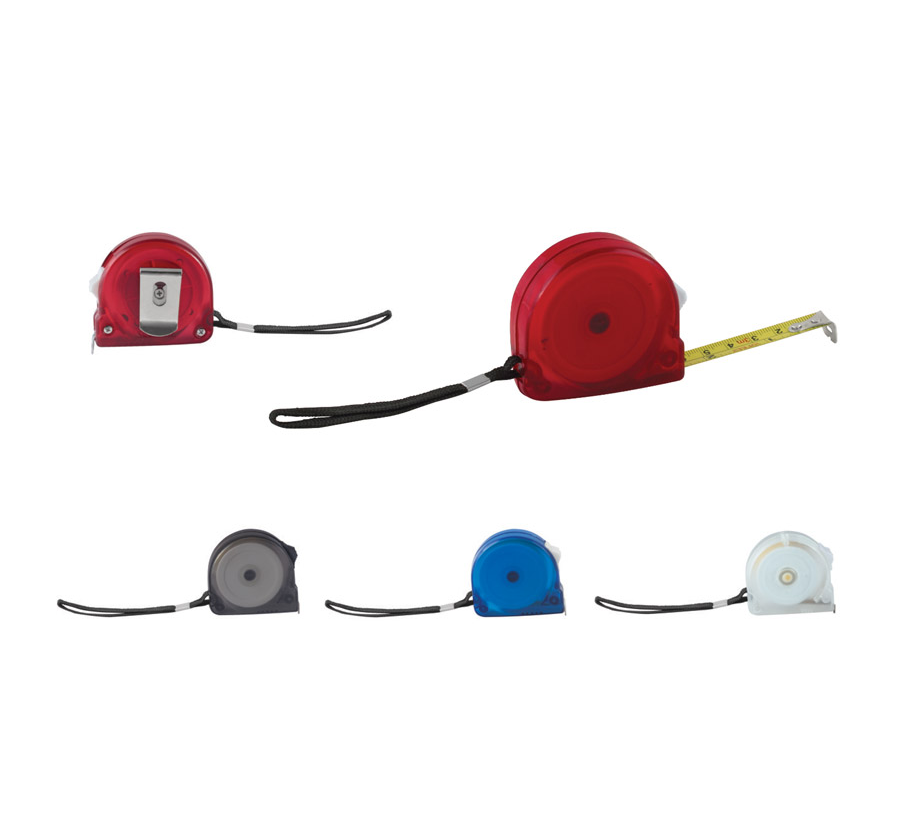 3 metre plastic measuring tape with belt clip.