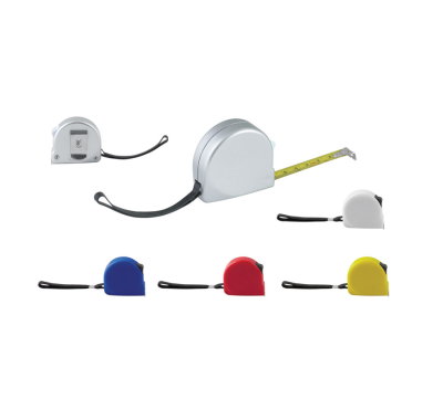 3 metre plastic measuring tape with belt clip.
