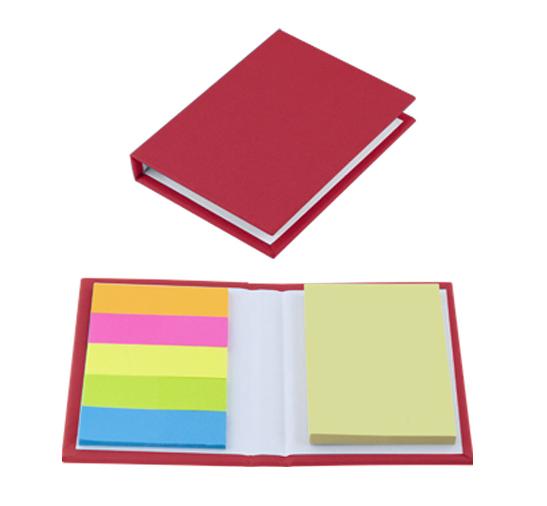Recycled paper hardcover booklet includes sticky notes in 6 color.