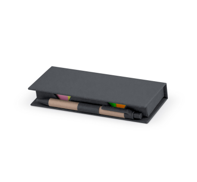 Cardboard container includes sticky notes in 7 colors, a plastic ruler,