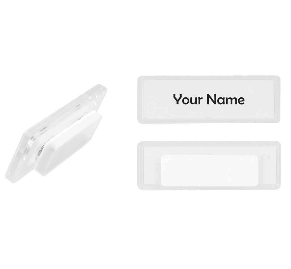 ID card holder, transparent clear, PVC, magnetic closure.