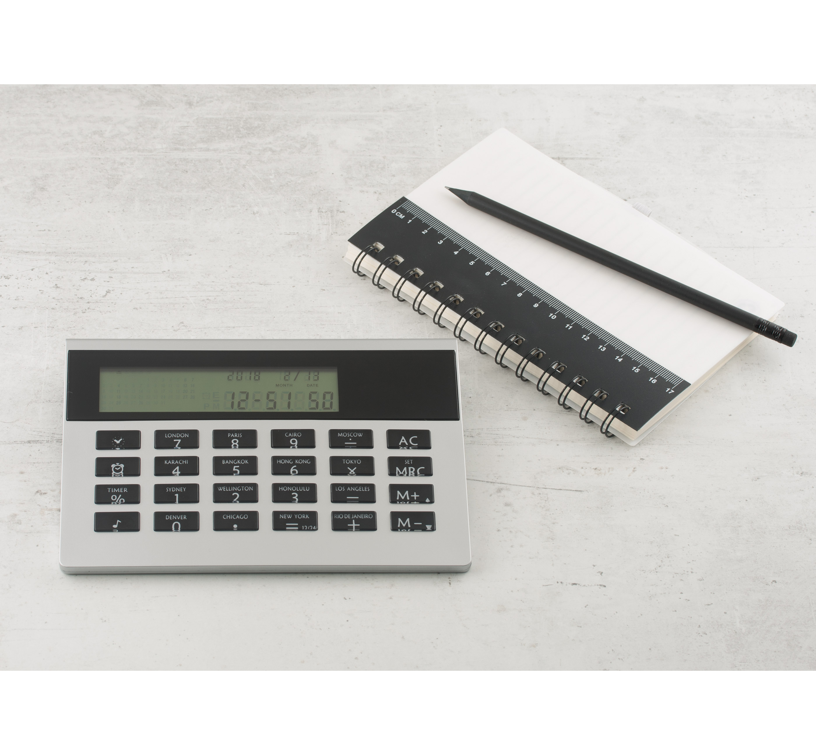 8 digit plastic calculator.