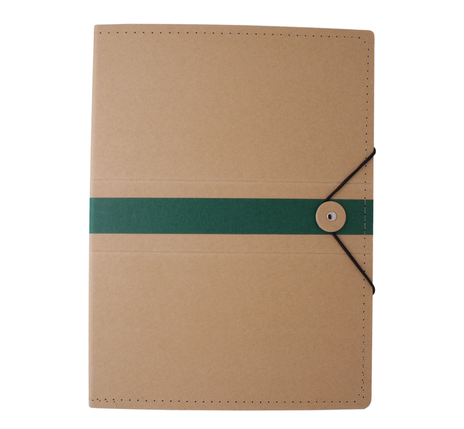 Еко папка с ластик, бележник А4, 20 листа с редове, цвят на хартията натурален, място за документи.
