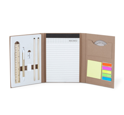 Еко тефтер с еко химикалка, моливи, линия, гума, острилка, транспортир, 50 листа с редове,