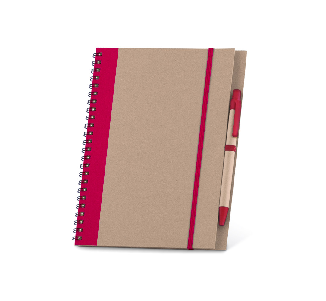 Еко тефтер с еко химикалка, 60 листа с редове, цвят на хартията слонова кост.