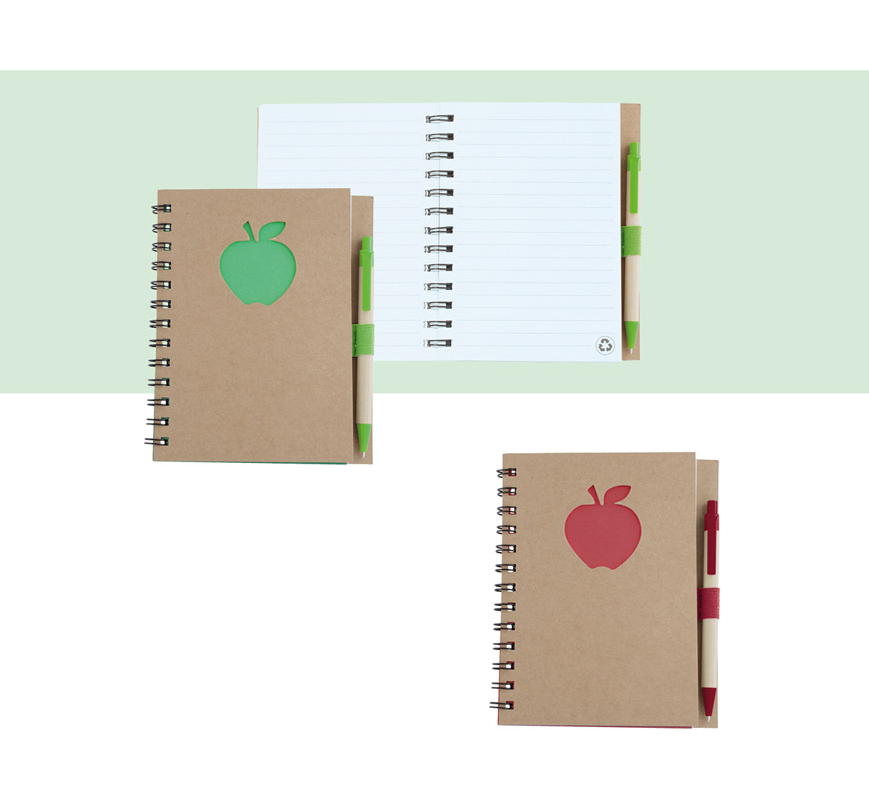 Еко тефтер с еко химикалка, 70 листа с редове, цвят на хартията бял.