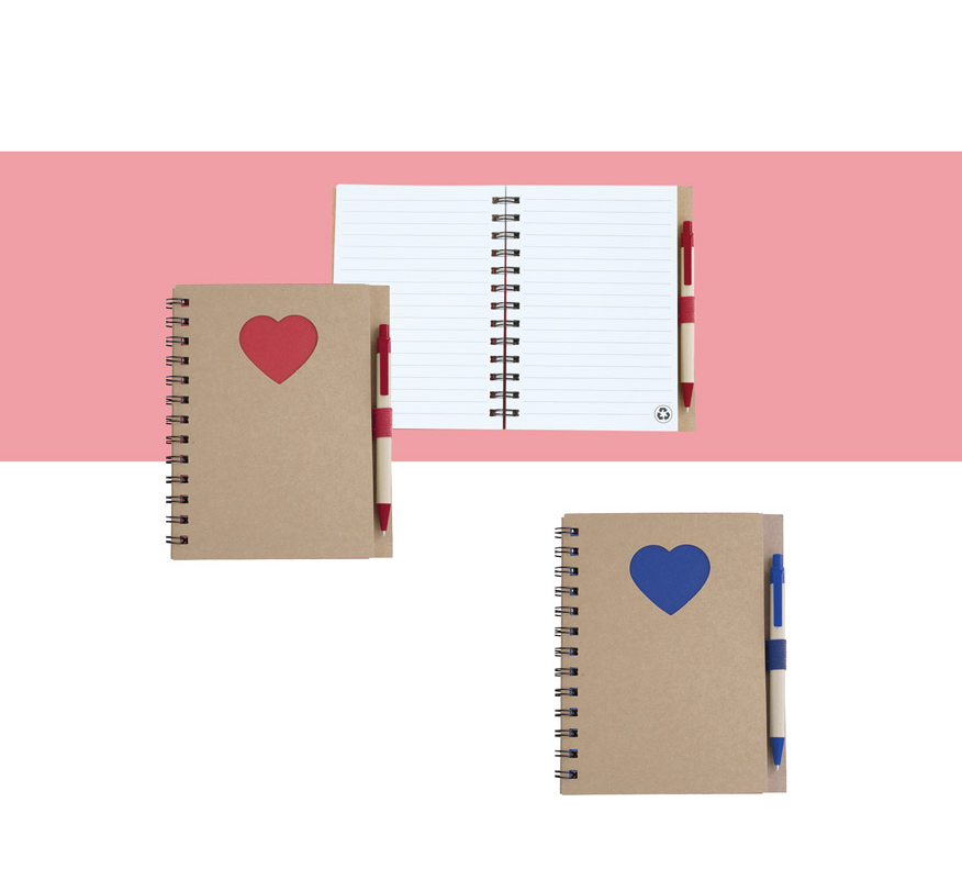 Еко тефтер с еко химикалка, 70 листа с редове, цвят на хартията бял.
