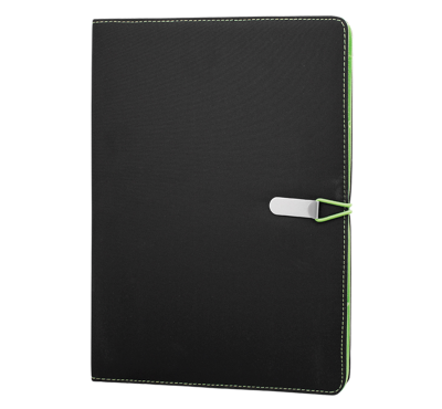 Папка с ластик, бележник А4, 20 листа с редове, цвят на хартията бял, място за химикалка и документи.